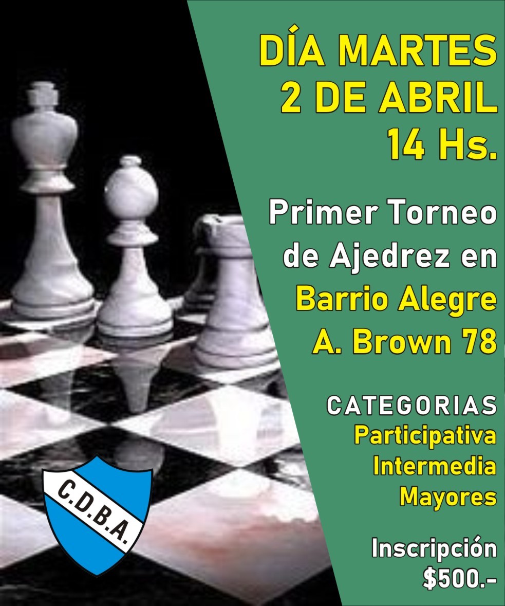 Hoy martes (2 de abril) la Escuela de Ajedrez del Club Deportivo Barrio Alegre organizará su Primer Torneo en el Salón Don José Bisignano ubicado en Almirante Brown 78.