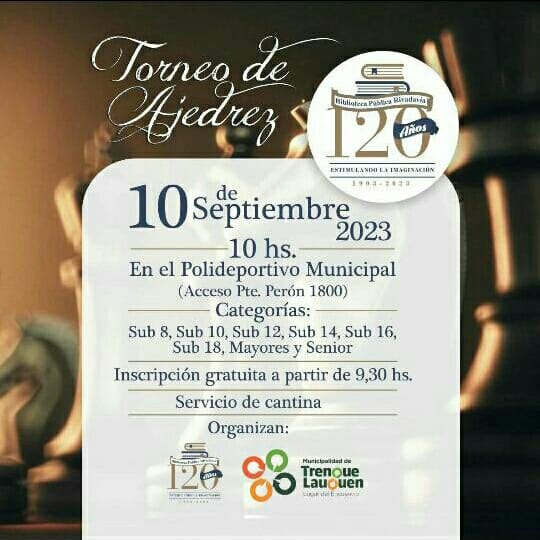 El próximo domingo 10 de septiembre en el Polideportivo Municipal se realizará el Torneo 120 años de la Biblioteca Rivadavia.