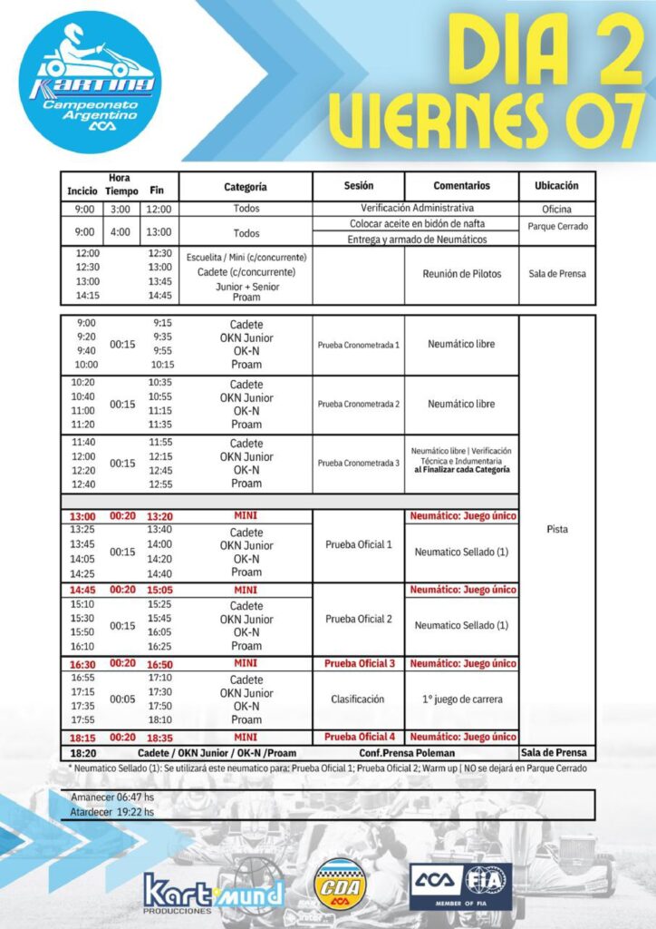 Los primeros en salir a girar en los entrenamientos –pasadas las 13 hs- fueron los pilotos de la categoría Cadetes, hubo nueve de ellos en la tanda 2 y fue el más rápido Valentino Diamante con un tiempo de 1m10s270.