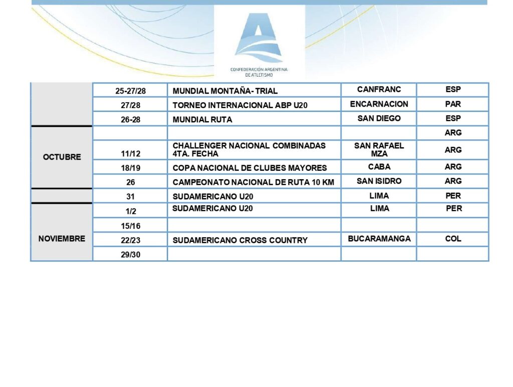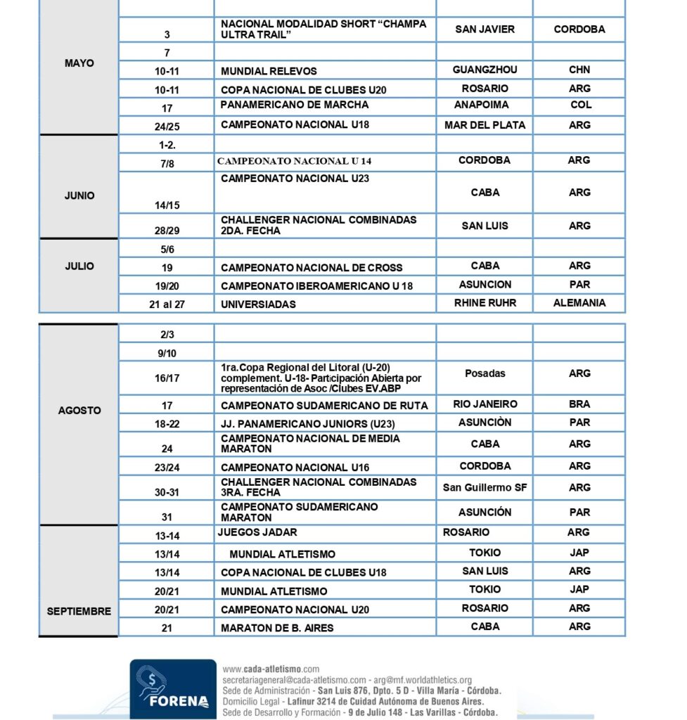 La actualización del calendario refleja el trabajo conjunto de la Dirección Técnica Nacional y las áreas de planificación, con el compromiso de elevar el nivel organizativo y competitivo del atletismo argentino.