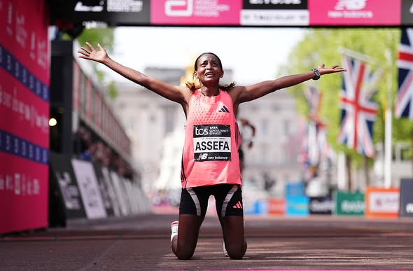 Por su parte, la carrera femenina fue un duelo a tres entre la etíope Tigst Assefa y las kenianas Joyciline Jepkosgei y Hellen Obiri, que se resolvió con mucha emoción en el último kilómetro, con un cambio de ritmo de Assefa al que no pudieron responder sus dos rivales. Assefa revalida victoria también en la capital británica, de nuevo con la mejor marca de la historia para una carrera solo de mujeres (2h15:40), pero un poco lejos de la que es su mejor marca, el 2h11:53 que registró en Berlín 2023, y que en su momento llegó a ser récord mundial. Obiri llegó segunda con 2h15:53 y tercera fue Jepkosgei con 2h15:54, mientras que la uruguaya Julia Paternain terminó octava en 2h25:47. Londres quedará para siempre como el lugar en el que el hombre bajó de las dos horas en maratón.