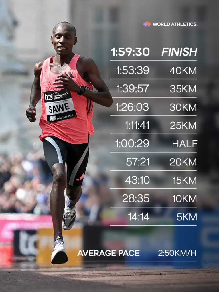 ¡¡Sabastian Sawe se convierte en la primera persona en romper la barrera de 2 horas en condiciones oficiales de carrera, asaltando a un histórico 1:59:30!! ️