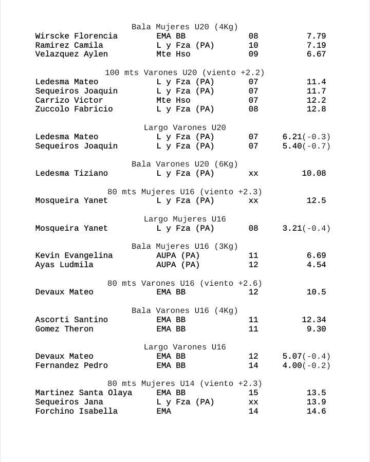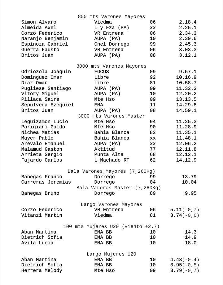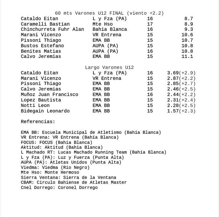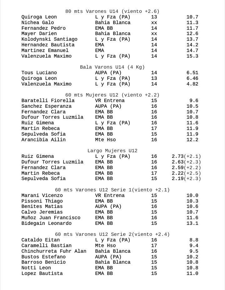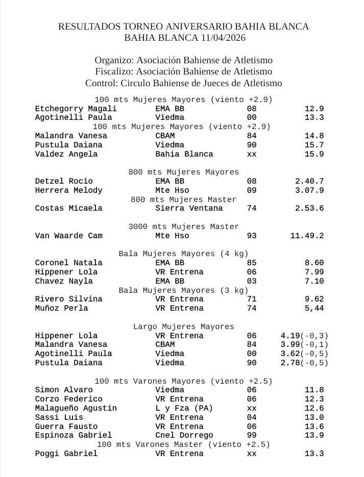 RESULTADOS DEL TORNEO AIVERSARIO CIUDAD DE BAHIA BLANCA
