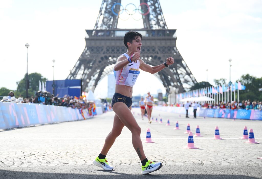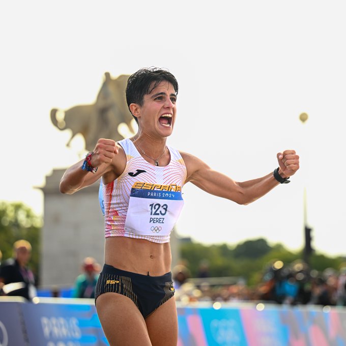 A falta de dos vueltas, a María Pérez ya se le escapaba una sonrisa cuando recibía el avituallamiento. En recta de meta ya empezó a saludar a amigos y aficionados, aunque esta vez no cogió ninguna bandera. Quizá para evitar la confusión del Mundial de Budapest o solo para darse un momento, tomar aire y soltarlo todo en el grito que despertó a París.