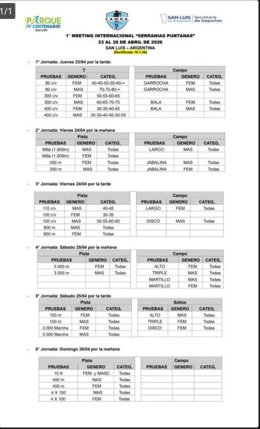 Este 15 de enero comenzó la inscripción para el torneo Internacionnal Meeting Master de pista y campo, San Luis 2026.