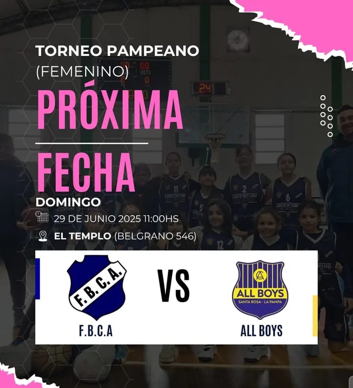 Por el provincial de básquetbol, el FBC Argentino será local este sábado 28, recibiendo al equipo de Alpachiri, La Pampa, en menores y en la categoría primera, donde viene de un triunfo ante Belgrano de Santa Rosa, también de local, partido jugado en el gimnasio de la Escuela Técnica.
