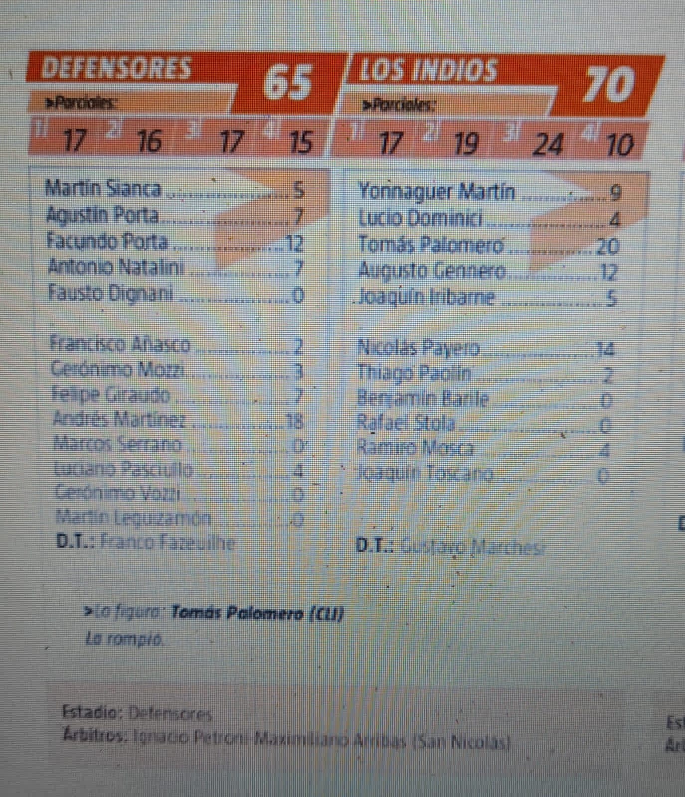 Los Indios de Junín también ganaron y fue de visitante, supero a Defemsores en Ramallo por 70 a 65.