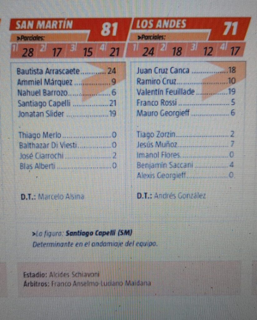 San Martin de Junín volvio a ganar y es el unico lider de la zona A, superó a Los Andes de Villa Ramallo por 81 a 71.
