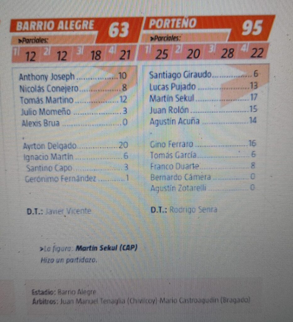 BARRIO ALEGRE PERDIO ANTE PORTEÑO DE CHACABUCO: FUE 95 A 63.