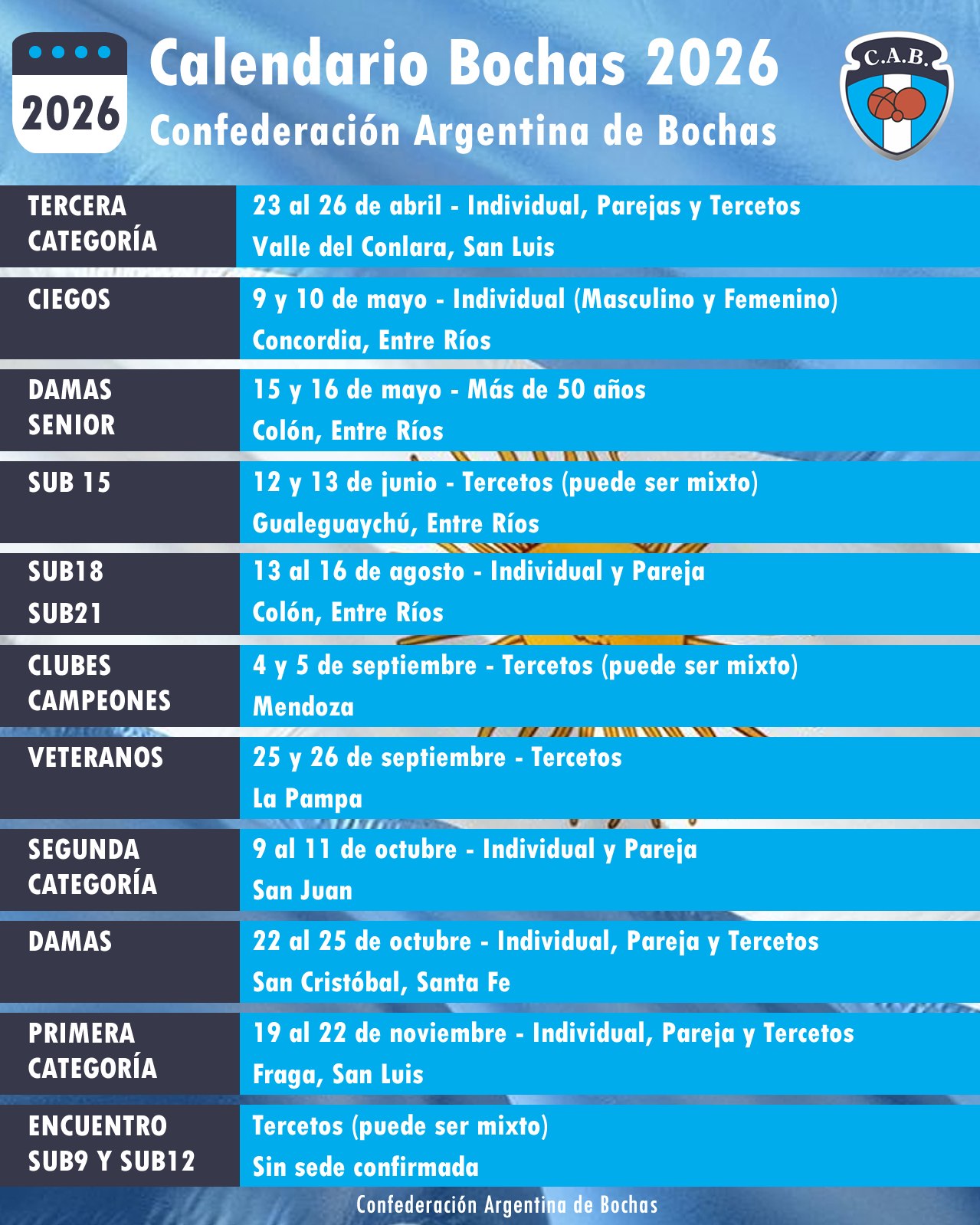 Mientras nos preparamos para el 1° Nacional del 2026, confirmamos sede de dos campeonatos: