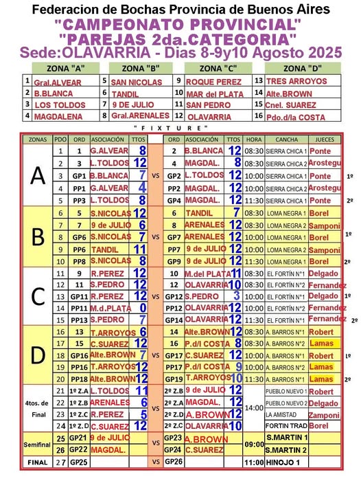 Este domingo se definió el torneo Provincial de Bochas para 2da categoría caballeros en parejas en la ciudad de Olavarría.