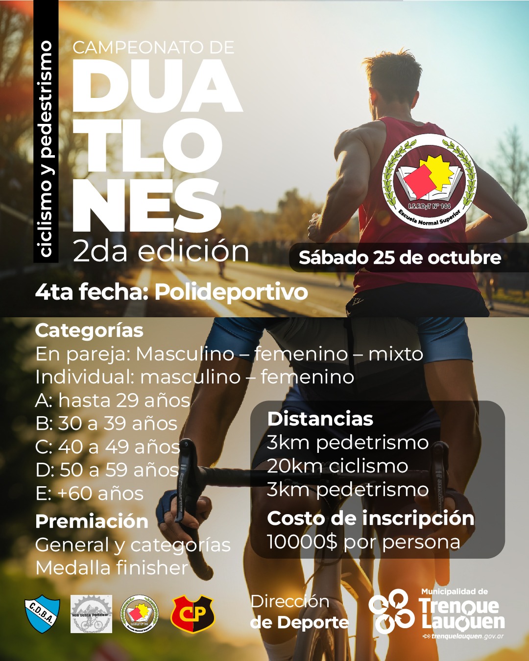 DUATLON CAMPEONATO PROVINCIAL DE DUATLON 2026 AHORA SI. PREPARATE. ENTRENA. ARMA TU EKIPO O HACELO SOLO... PEHUAJO. DOBLE PUNTUACIO. Y DISTANCIA MAS LARGA TODO EL EGLAMENTO ++++++++++++