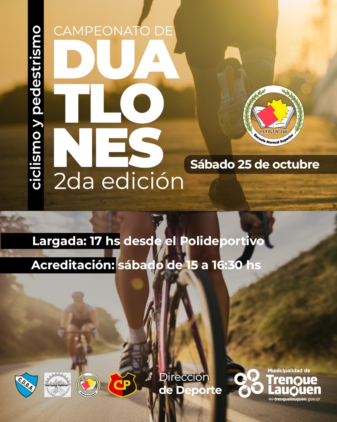 La ultima fecha que será organizada por el ISFS Nº 144 del Campeonato de Duatlones, fue postergada para el sábado 25 de octubre a las 17 hs.