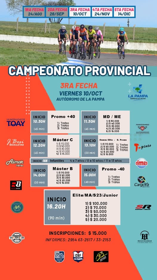 El certamen luego tendra su cuarta fecha el 24 de noviembre y el cierre con la 5ta cita sera el 14 de diciembre, siempre en el autodromo provincial de La Pampa, ubicado en Toay.