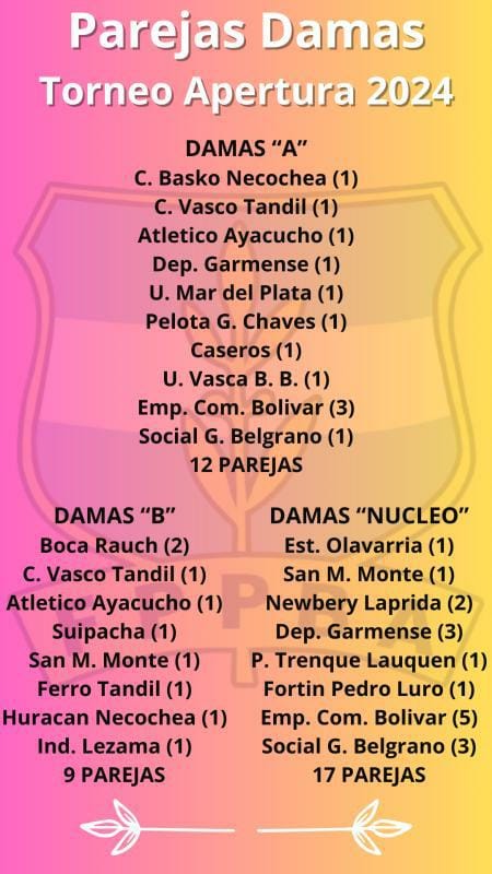 El sábado 27 de abril comenzarán los certámenes de Damas «A», «B» y Núcleo