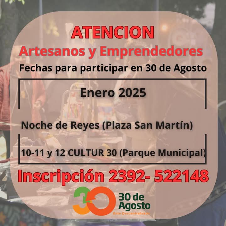 Artesanos, emprendedores y gastronómicos comunicarse por whatsapp al 2392 – 522148.-