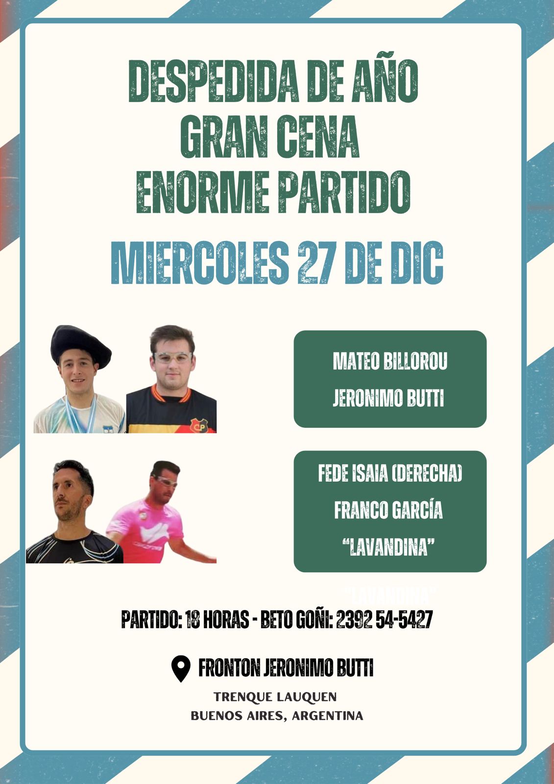 Despedida del año Pelota Paleta con gran partido y cena
