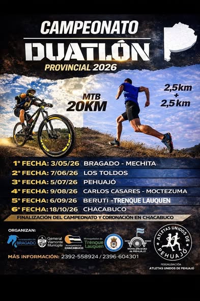 DUATLON PROVINCIAL FINAL DEL CERTAMEN EN PEHUAJO Por Deportelauquen, FECHA DEL CORONACION DEL PROVINCIAL BONAERENSE ESTE DOMINGO 12 EN PEHUAJO Le dejamos link de inscripción https://forms.gle/1FA48B3AH6rBvcNA6 .-