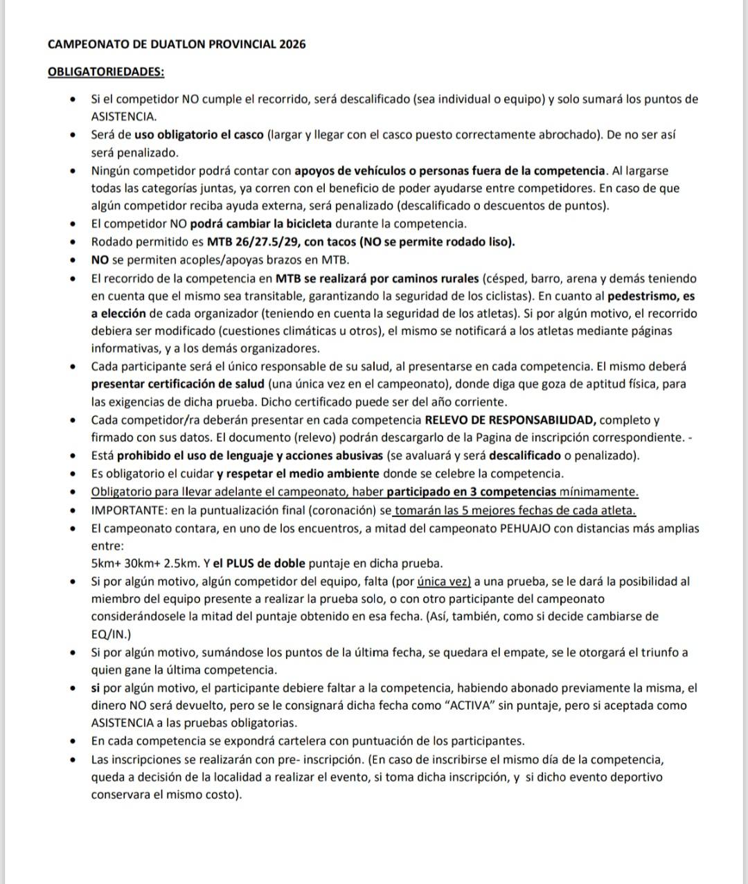 CAMPEONATO PROVINCIAL DE DUATLON 2026