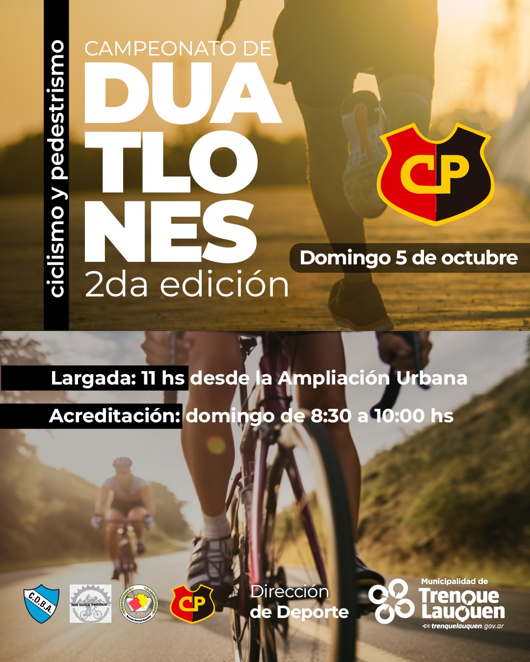 El próximo domingo 5 de octubre se correrá la 3º fecha de la II edición del Campeonato de Duatlones, una propuesta que combina pedestrismo y ciclismo y que viene creciendo con gran acompañamiento de la comunidad deportiva. La cita, la tercea del certamen regional, se correrá en la Ampliación Urbana.
