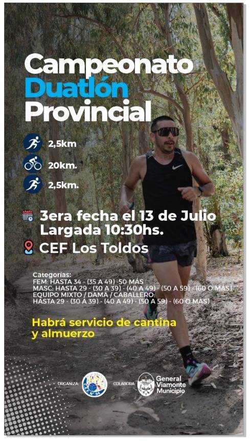 Este domingo 13 en Los Toldos (BsAs) Duatlon.