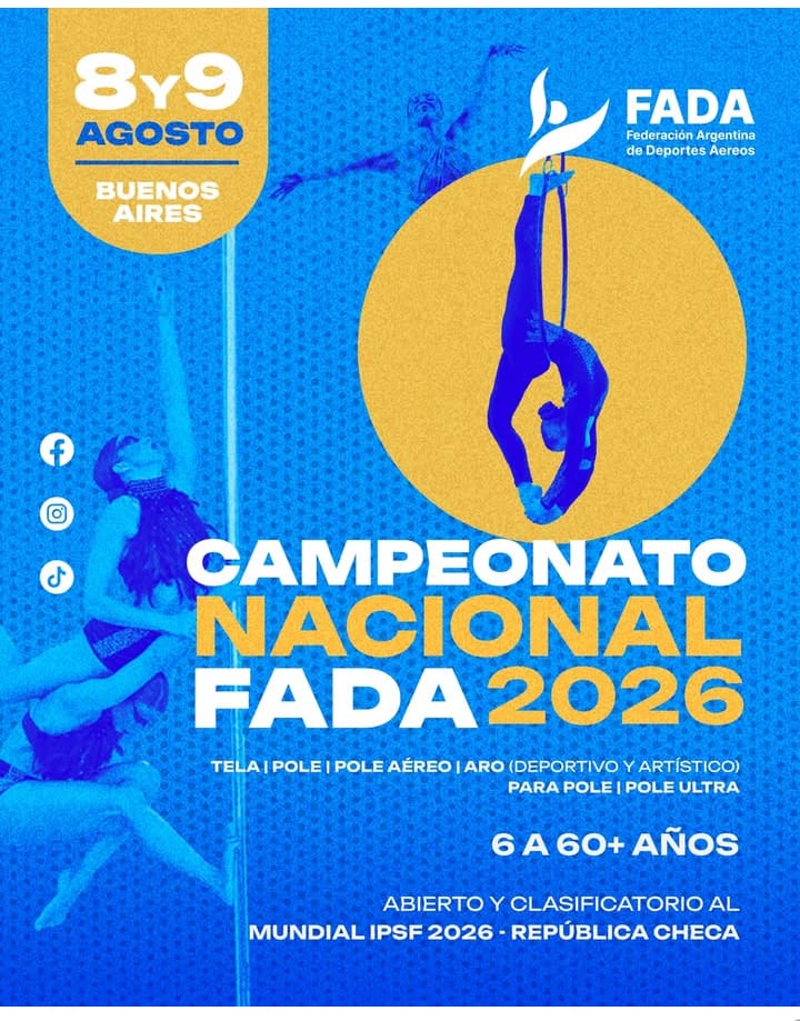 Competencias en tela, aro, pole aéreo y pole (deportivo y artístico), además de pole y pole ultra.