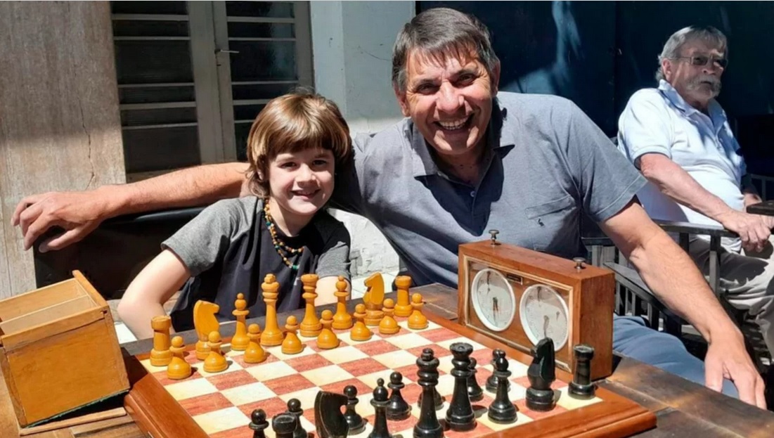“En Trenque voy con mi abuelo (‘Peluca’ Martínez) al Club El Progreso, y ahí también aprendí a jugar chinchón y truco…”, dijo el desinhibido chiquilín. Está aún haciendo los palotes en el juego de los trebejos, pero tiene la vida por delante para ser un ajedrecista de nota el día de mañana.