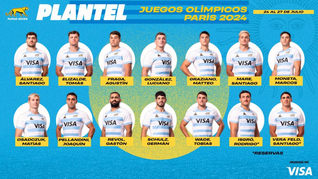 Luego de una magnífica temporada en el Circuito Mundial del SVNS 2024 con la obtención del histórico primer puesto y la medalla de plata en la Gran Final de Madrid, Los Pumas 7’s tienen el plantel confirmado para disputar en París 2024 los Juegos Olímpicos. Santiago Gómez Cora dio a conocer la lista de 12 jugadores y los dos reservas que serán de la partida en la capital parisina, en donde Argentina compartirá el Grupo B junto con Australia, Samoa y Kenia del 24 al 27 de julio.