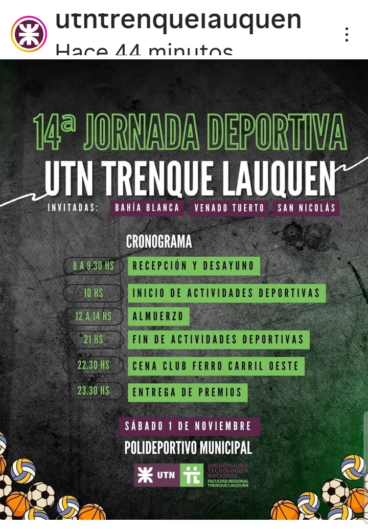 Falta muy poco para la 14ª Jornada Deportiva UTN Trenque Lauquen!