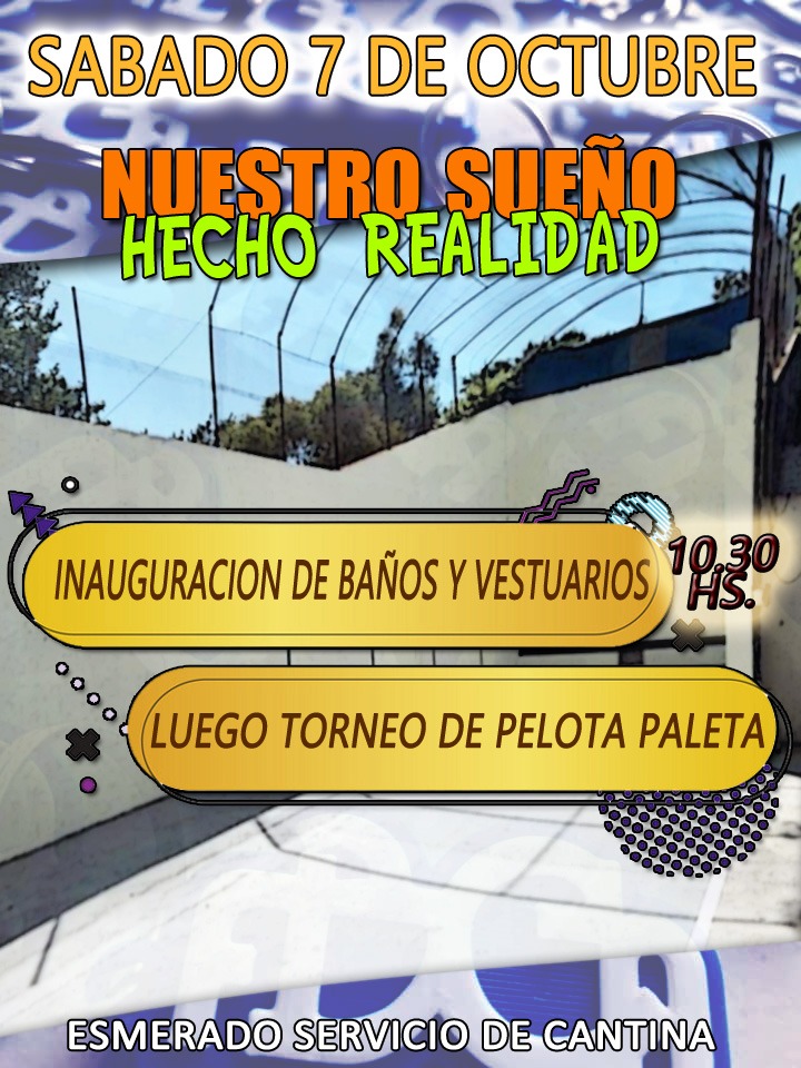 El sabado 7 de Octubre se inaugurará Vestuario y Baños en Pelota paleta en FBC Argentino