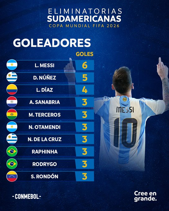 Messi, de 37 años, es el máximo anotador histórico de Argentina con esa cantidad de tantos en 189 partidos. Su primer festejo en la mayor fue en un amistoso ante Croacia celebrado en la ciudad suiza de Basilea, el 1 de marzo de 2006.