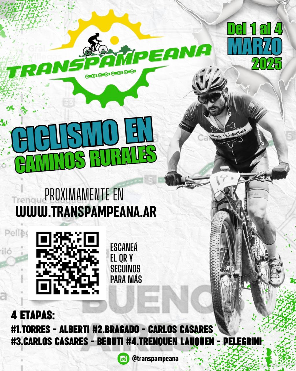 Del 1º al 4 de marzo se realizará la Transpampeana, carrera de ciclismo que atraviesa la provincia de Buenos Aires por sus caminos rurales, ciudades y localidades, y que también pasará por el distrito de Trenque Lauquen.