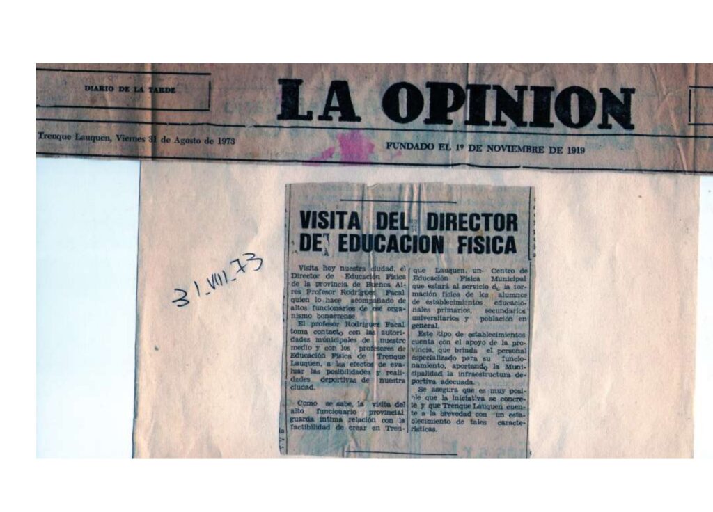 EL 26 DE ABRIL DE 1974 SE CREA EL CENTRO DE EDUCACION FISICA DE TRENQUE LAUQUEN.´