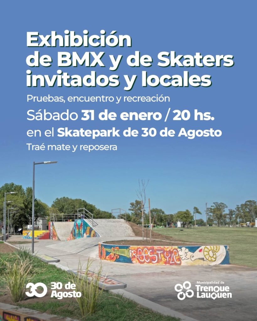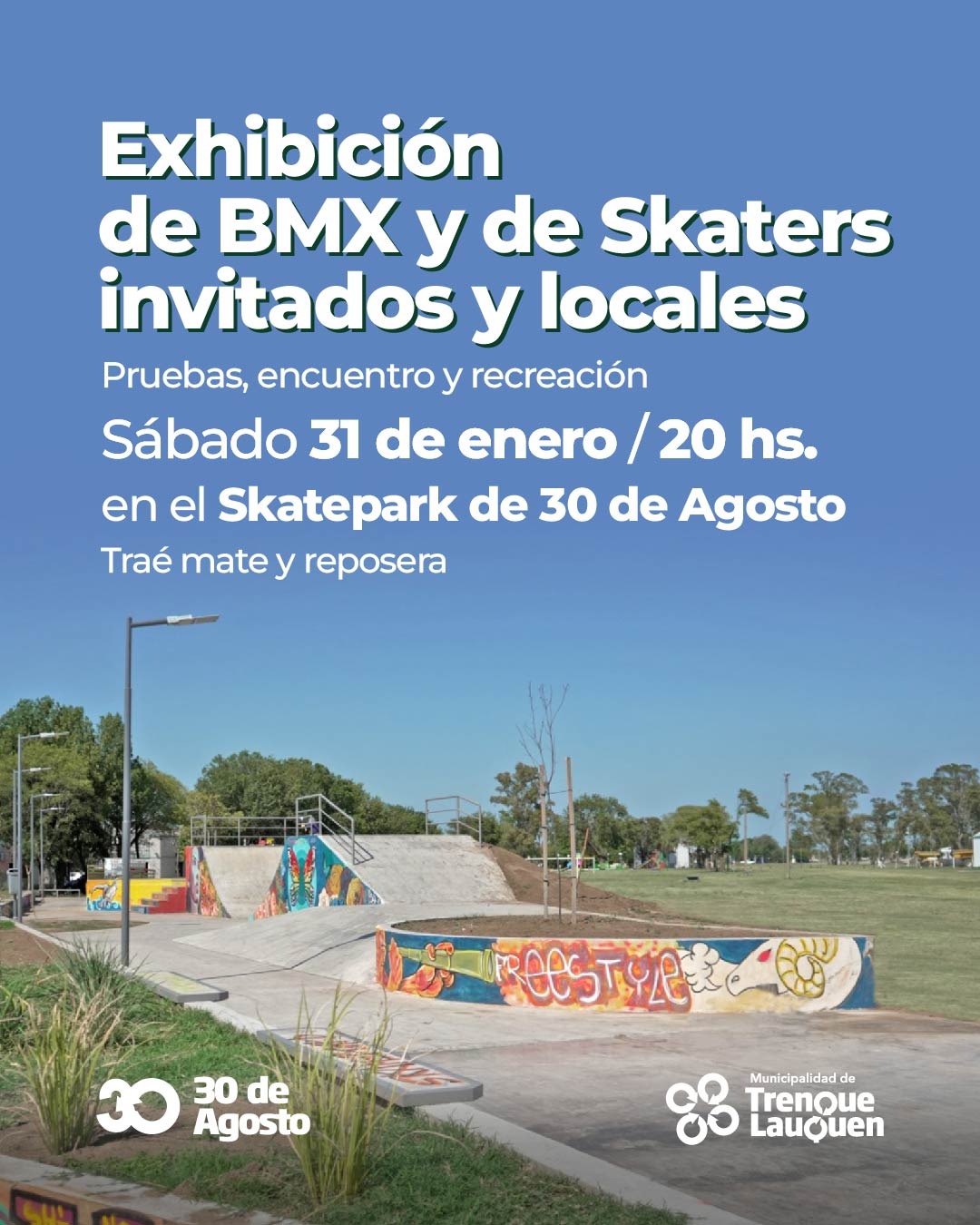 Este sábado a partir de las 20 se dará una exhibición de BMX y skaters invitados y locales en el Skatepark de 30 de Agosto.