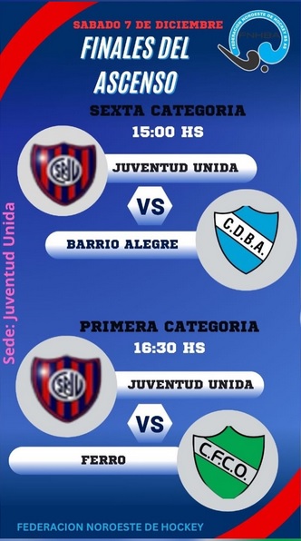 Sábado 7 de diciembre se define los campeones del Ascenso en las categorías Sexta y Primera. En séptima Ferro es el campeón de la categoría en Ascenso por haber obtenido el Apertura y el Clausura.