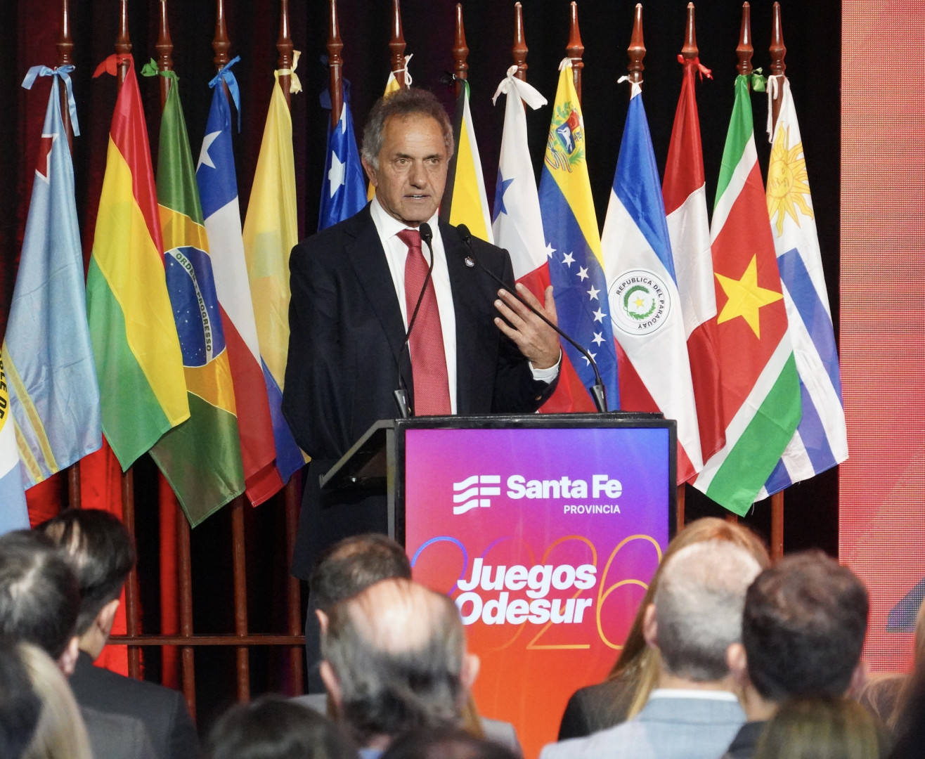 El secretario de Turismo, Ambiente y Deportes, Daniel Scioli, participó del acto junto a autoridades de la ODESUR, del COA, deportistas y autoridades nacionales, provinciales y municipales. Del 12 al 26 de septiembre de 2026 la acción llegará a Rosario, Rafaela y Santa Fe.