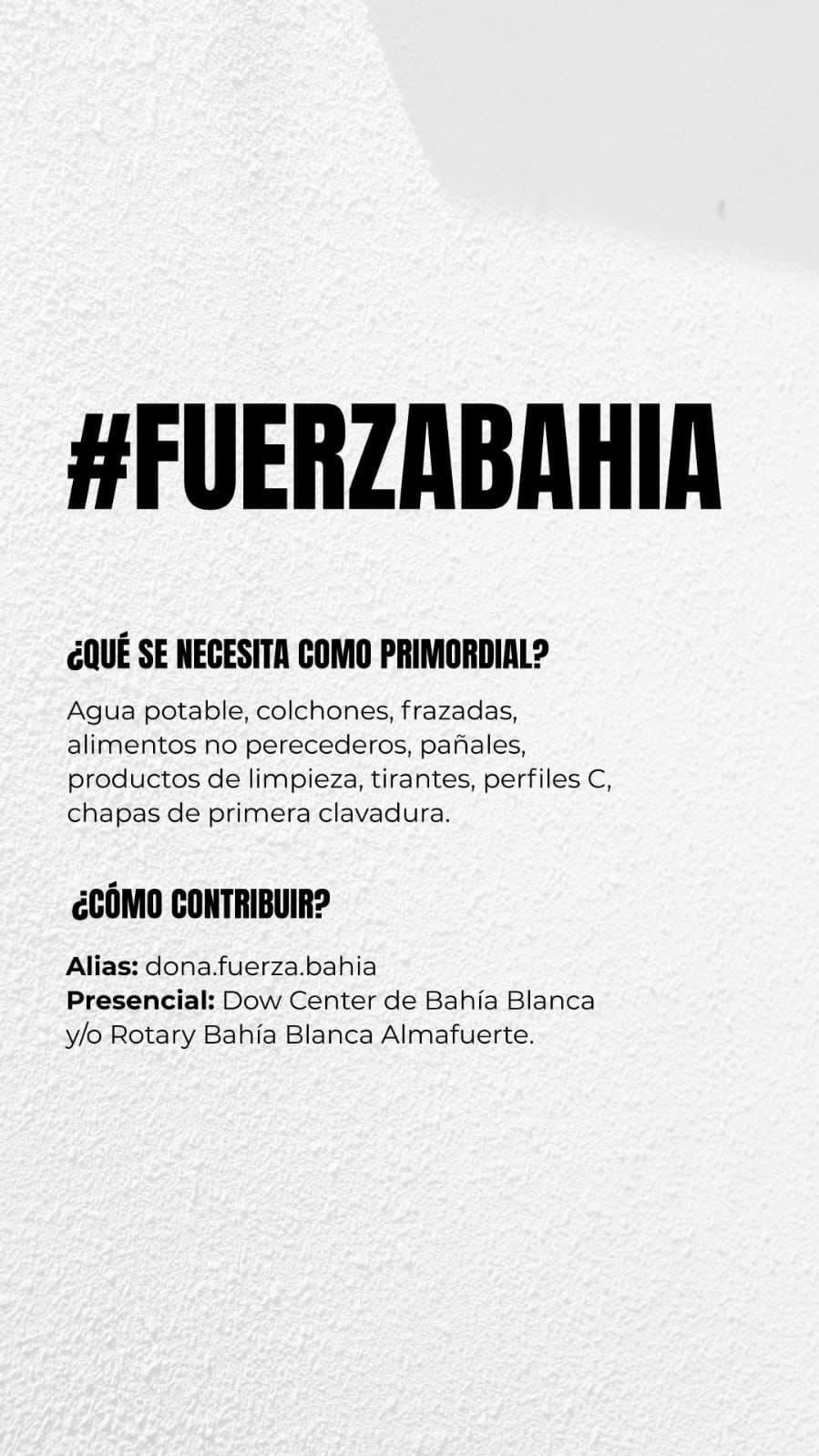 Los organizadores de #FuerzaBahia están trabajando en conjunto con el Club Roraty Internacional –que armo un Comité de Crisis para la clasificación, logística y distribución- y con la Municipalidad de Bahía Blanca y los equipos de ayuda civil para asegurar que las donaciones sean efectivas y lleguen a los más necesitados.