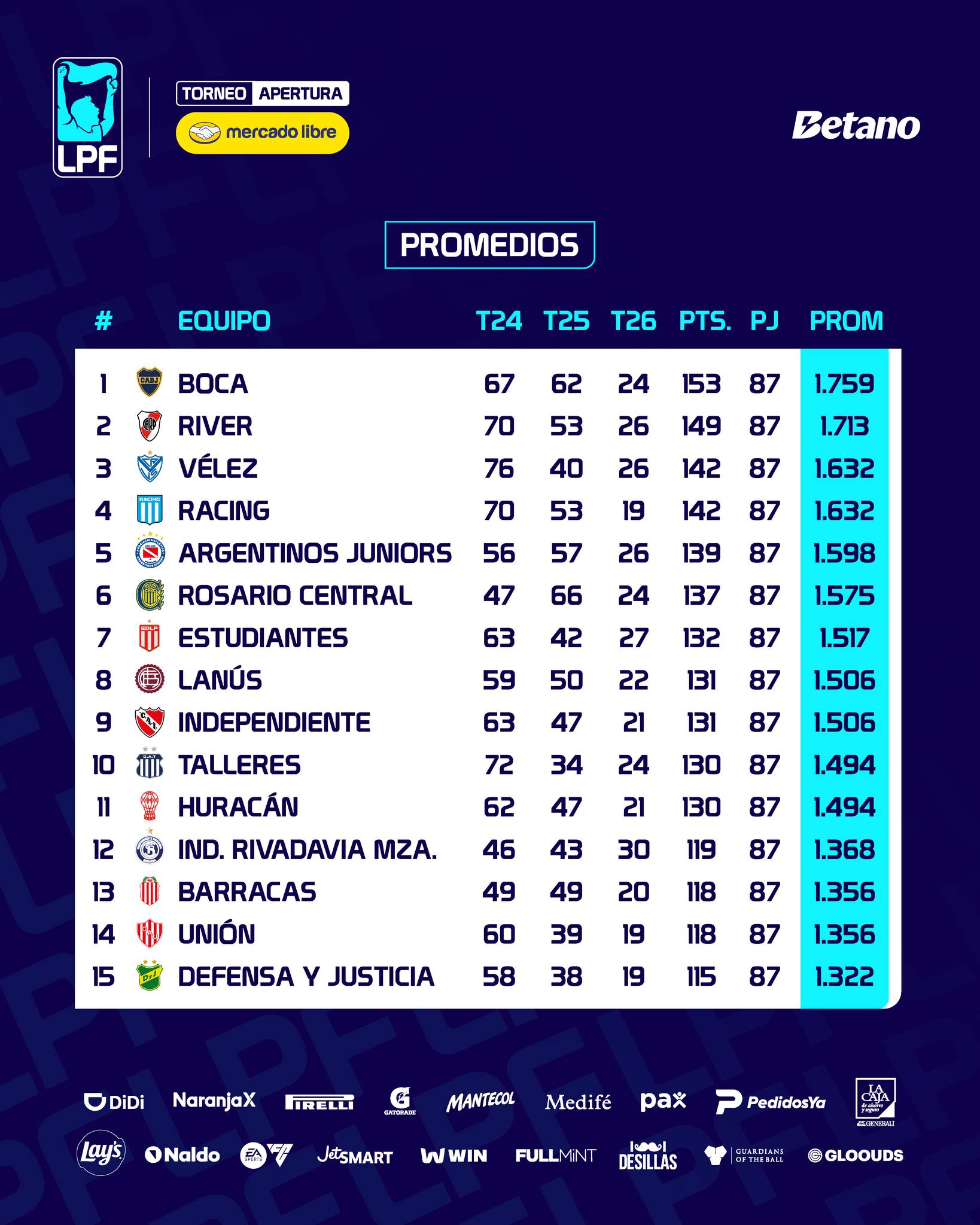 TABLA GENERAL Y PROMEDIOS