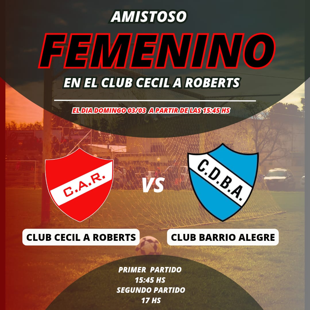 Este domingo 3 de marzo se jugarán dos partidos amistosos entre el equipo femenino del Club Cecil A. Roberts y el Club Barrio Alegre.