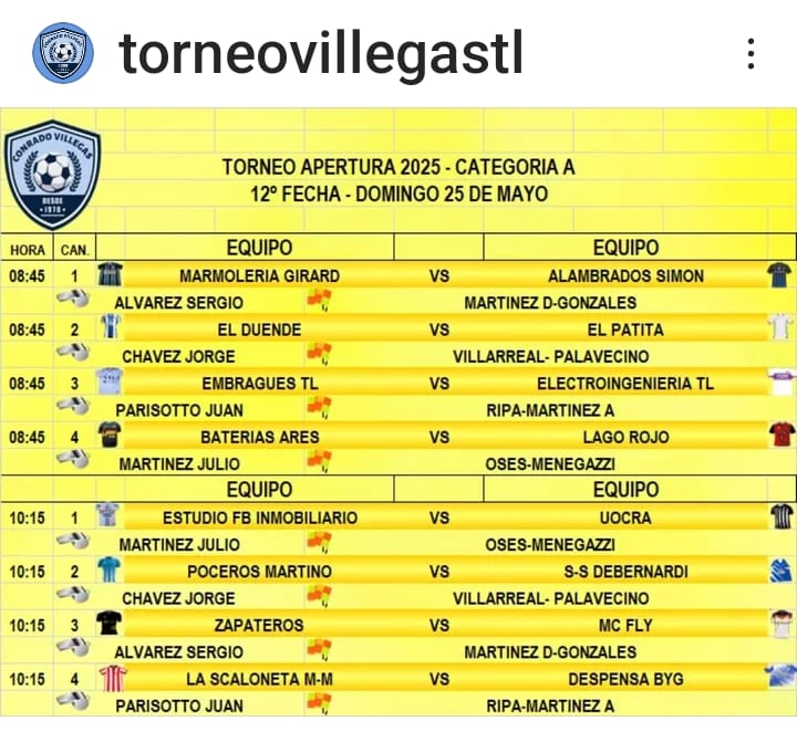 LOS PARTIDOS DEL DIA DOMINGO 25. CATEGORIA A