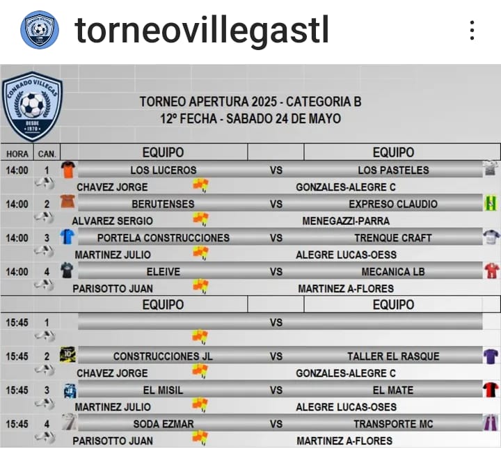 LOS PARTIDOS DE ESTE SABADO 24. CATEGORIA B