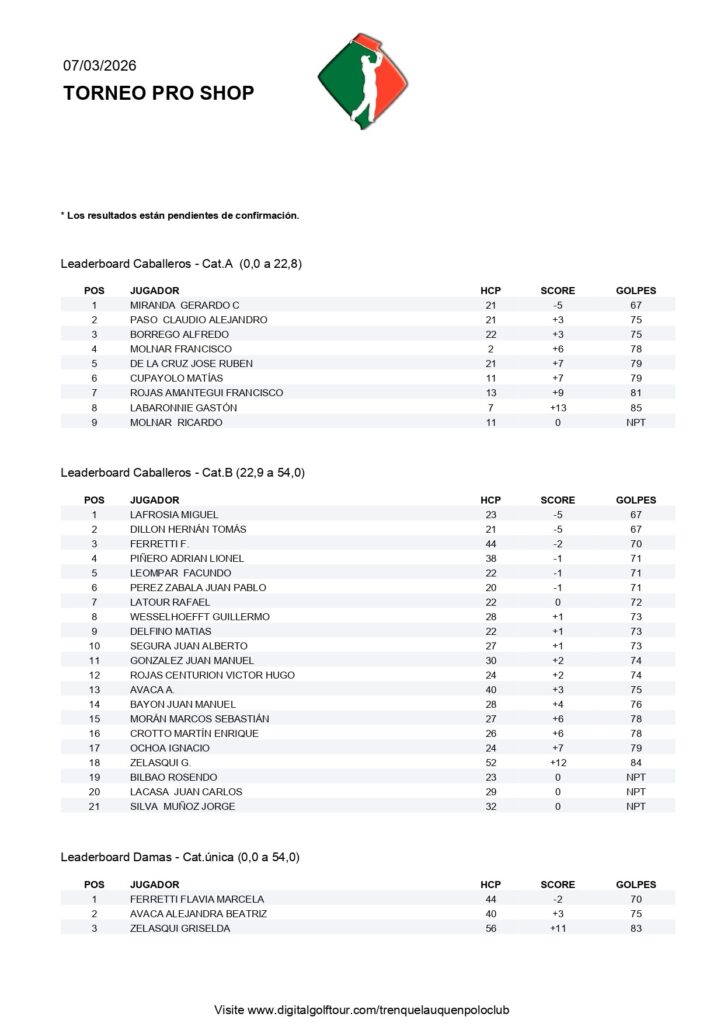 TORNEO MEDAL18 PRO SHOP SABADO 7 DE MARZO
