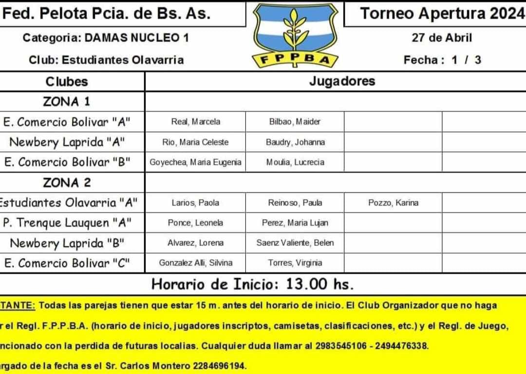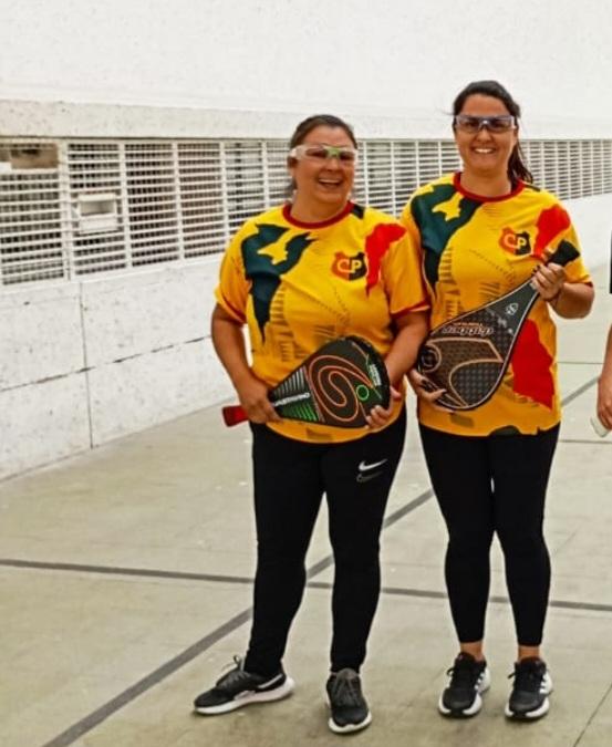 Lujan Perez y Leonela Ponce, la primera pareja Femenina que representa al Club Progreso de Trenque Lauquen, que debuto en el Primer Provincial de Pelota Paleta Nucleo Femenina,en la Ciudad de Olavarria.