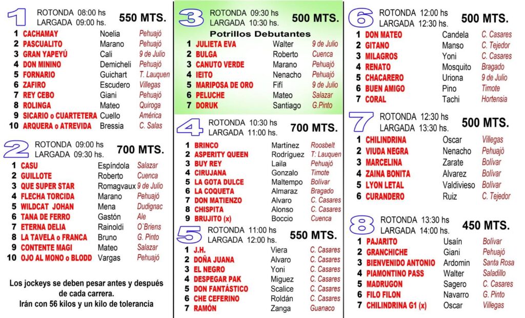 Ya están confirmadas para este domingo 15 carreras. Con un clásico Gerardo Negro Miguel y una Especial Carlos Uriona