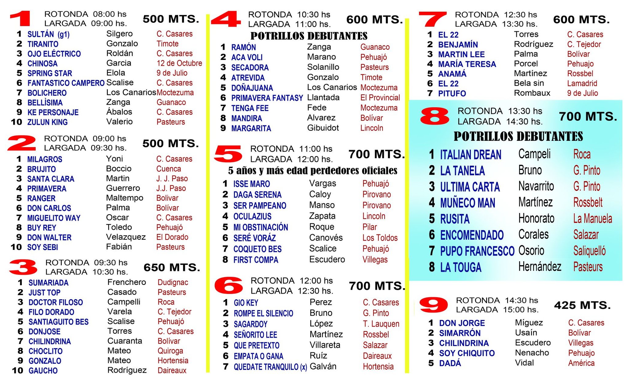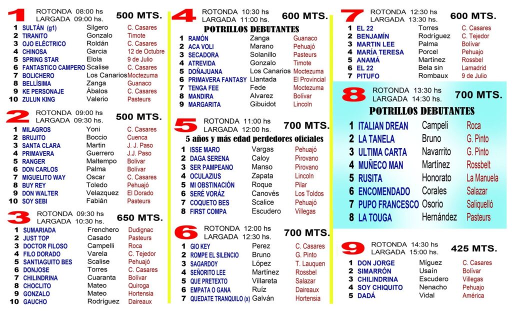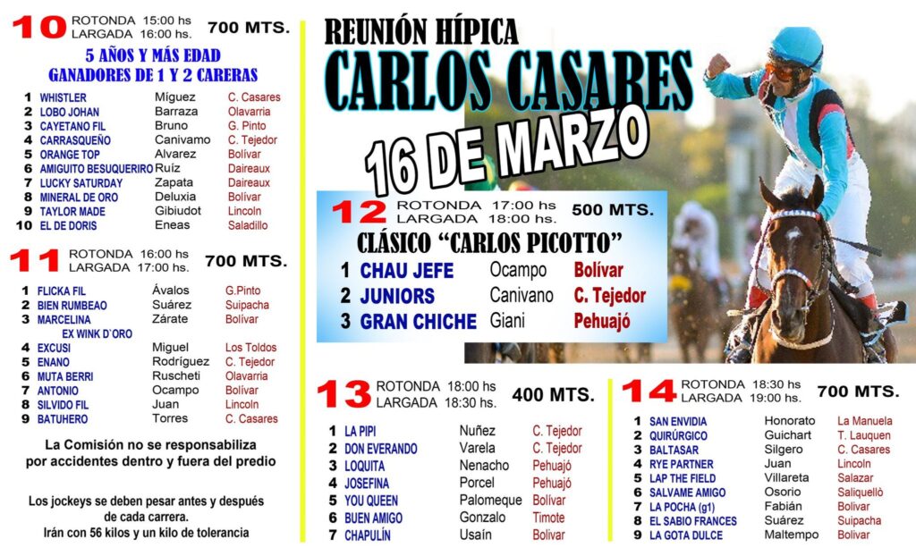 En la carrera 6 estara compitiendo Sagardoy de Lopez, obre 700 metros y en la carrera 14 estara Quirurgico de Guichart, tambien en carrera a 700 mts.
