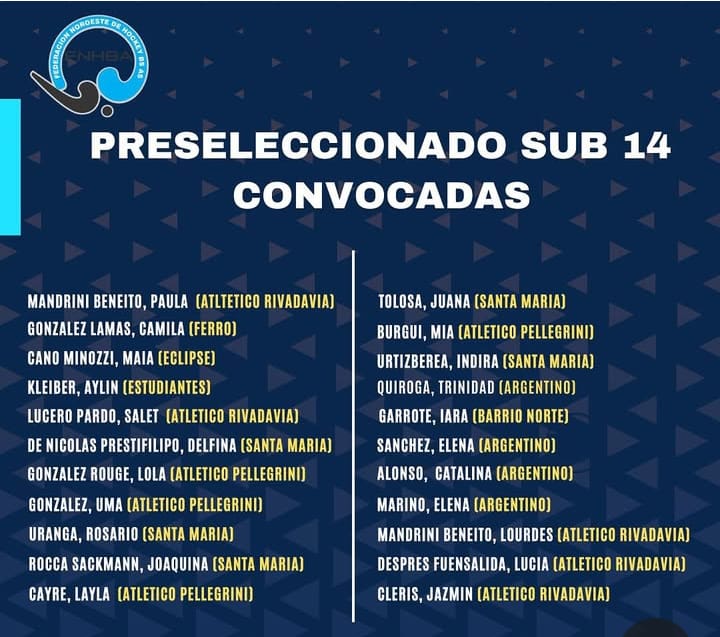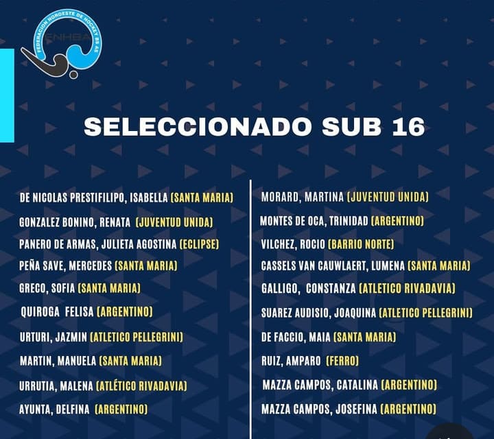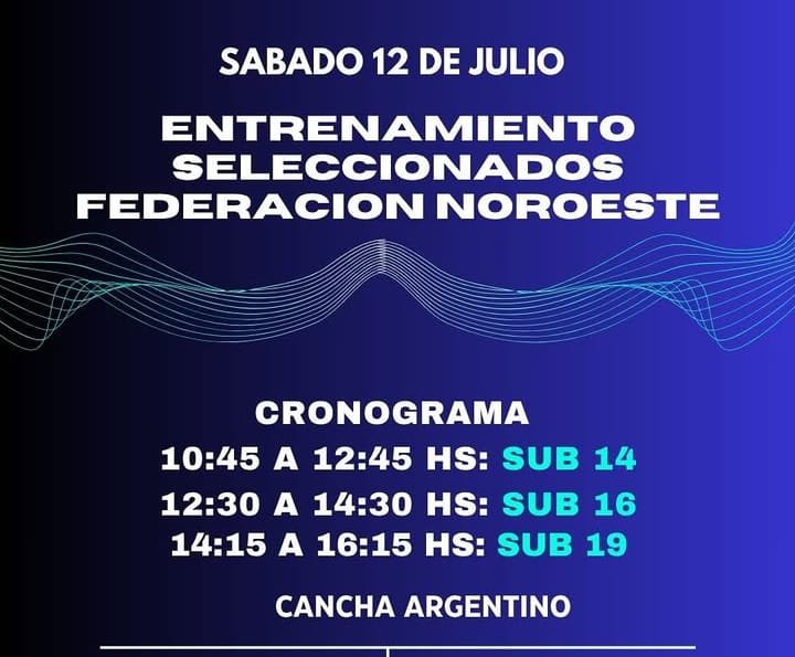 Los planteles femeninos sub 14, sub 16 y sub 19 de la Federación Noroeste de Hockey tendran entrenamientos este sábado 12 de julio en Trenque Lauquen.