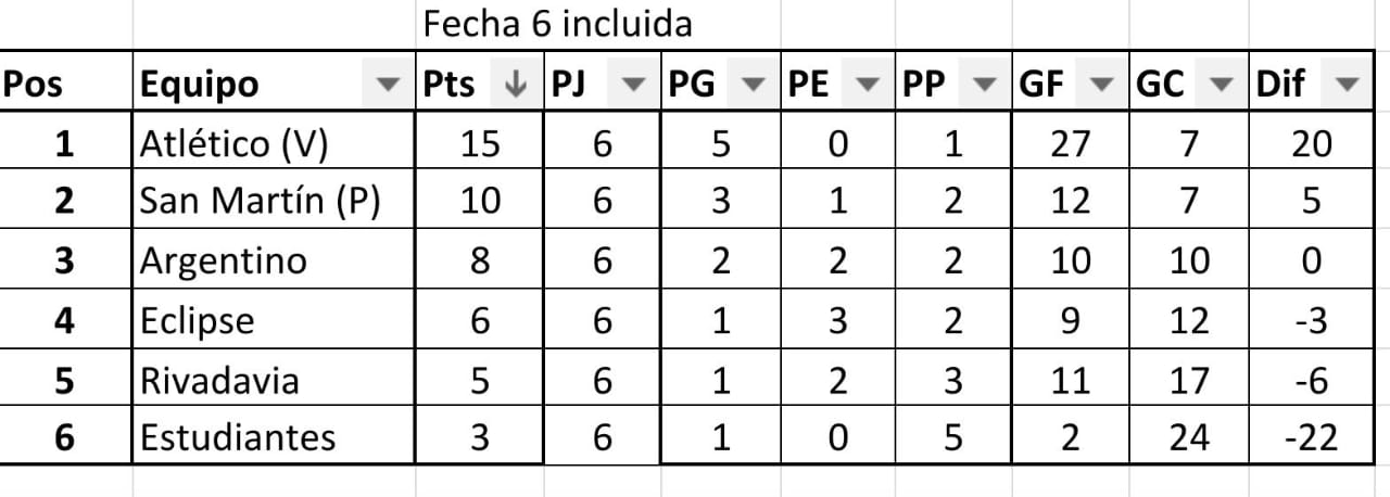 | Atl. Villegas | 3 | – | 1 | Atletico (9dJ) |