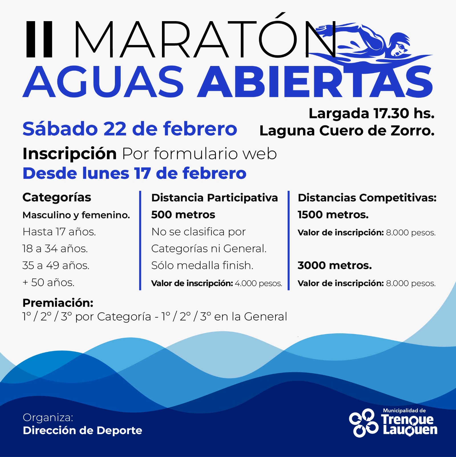El sábado próximo (22) desde las 17.30 en la laguna Cuero de Zorro tendrá lugar la II Maratón Aguas Abiertas organizada por la dirección de Deporte del municipio.