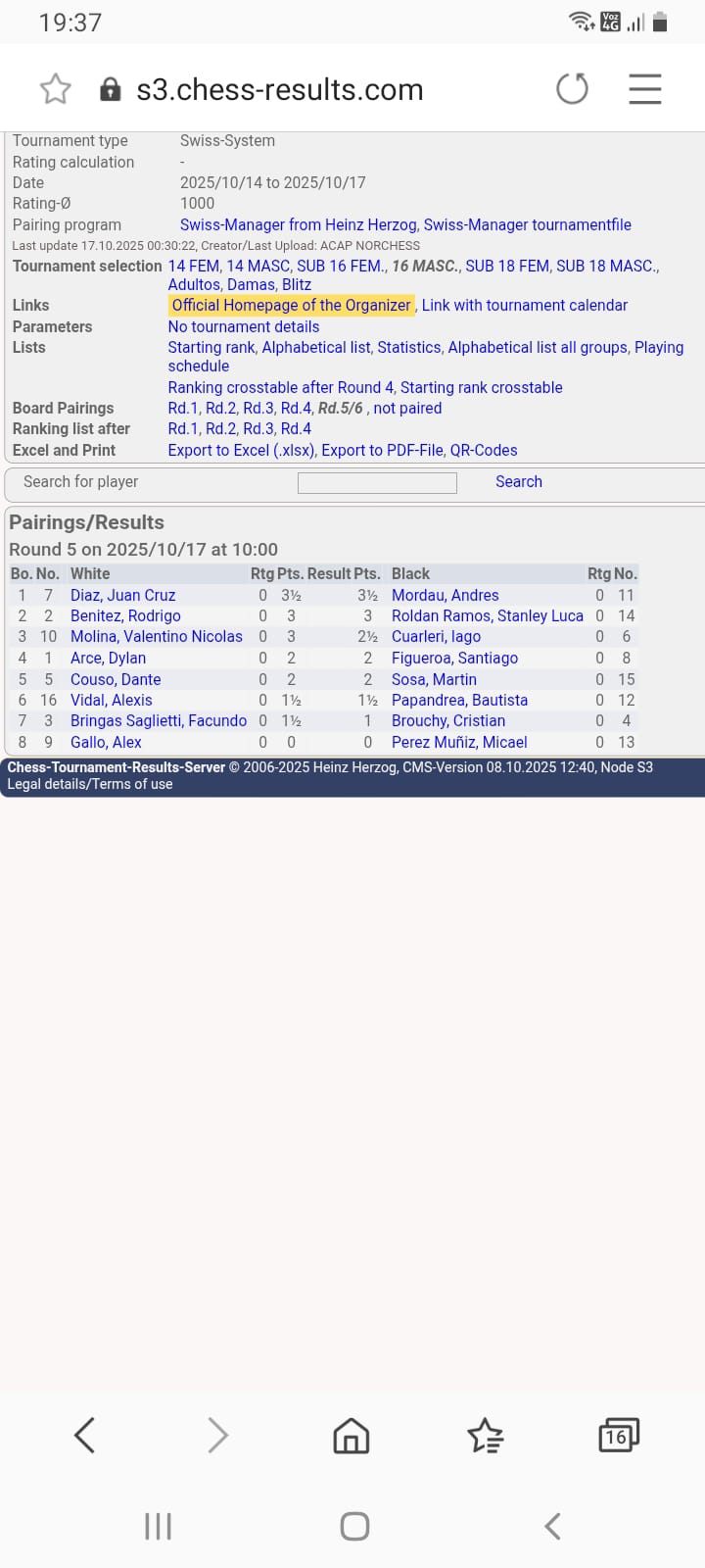AJEDREZ. ANDRES MORDAU, SIGUE INVICTO, HIZO TABLAS EN LA 4TA PARTIDA