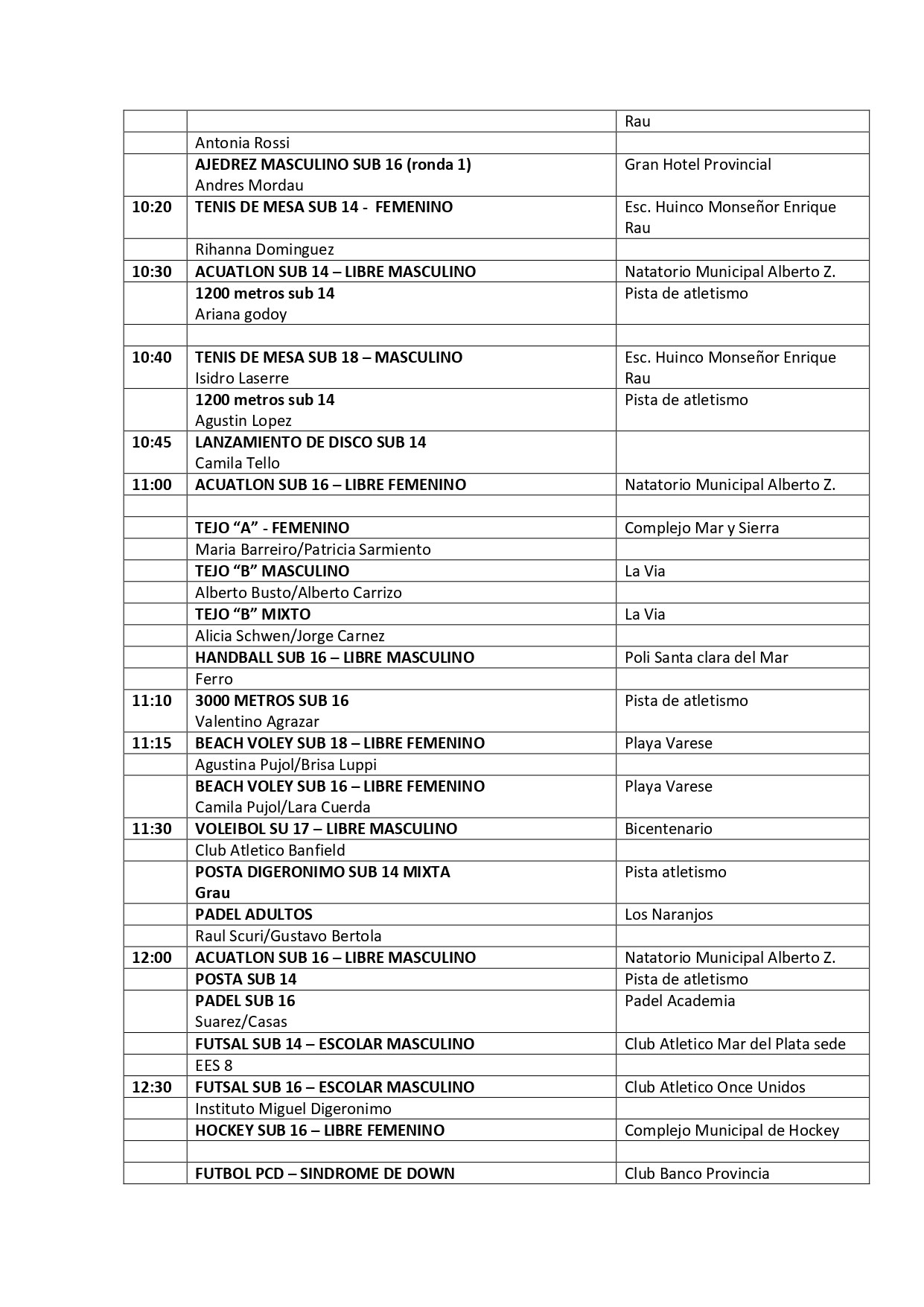 A las 8,30 hs será el turno para el debut del Voleibol. En este caso con la categoría sub 16 escolar femenino, el equipo de la Escuela 3 estará debutando ante Pergamino, por la zona A, partido a jugarse en el Instituto Peralta Ramos.
